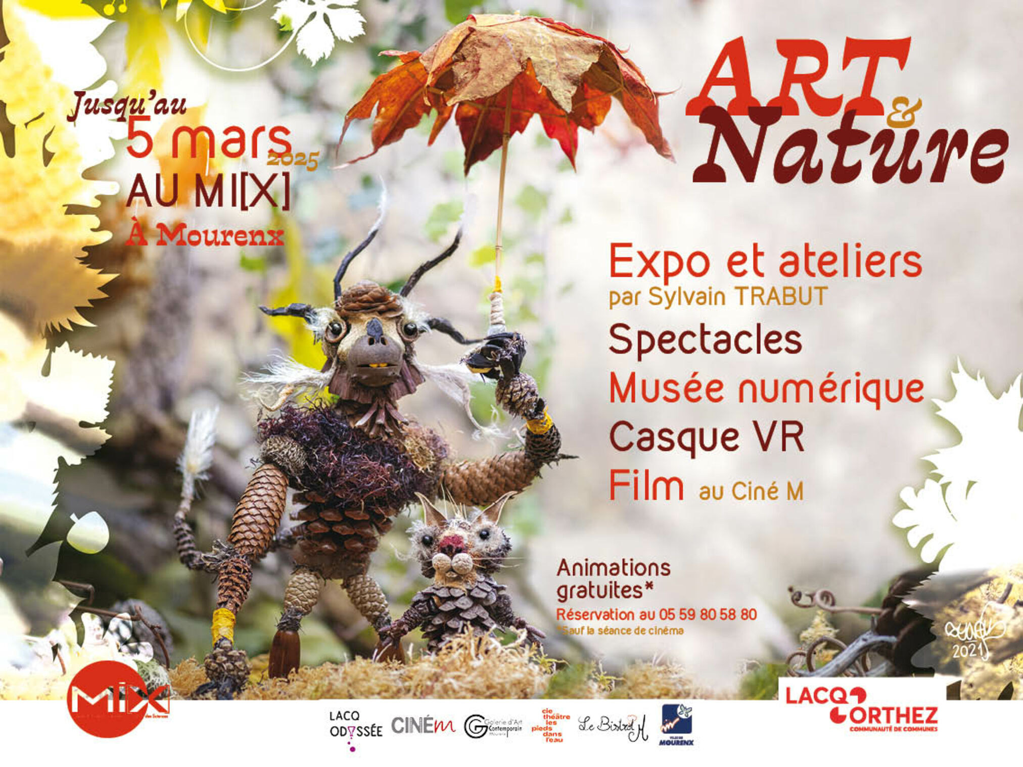 Jusqu'au 5 mars participez à des animations gratuites autour de l'art et de la nature, comme une exposition et des ateliers de "Land Art" de poche menés par le célèbre platicien Sylvain TRABUT, un spectacle "Histoires à 1001 traces" par la cie Le chant des histoires, des lectures pour les enfants, des experiences en réalité virtuelle, du cinéma....