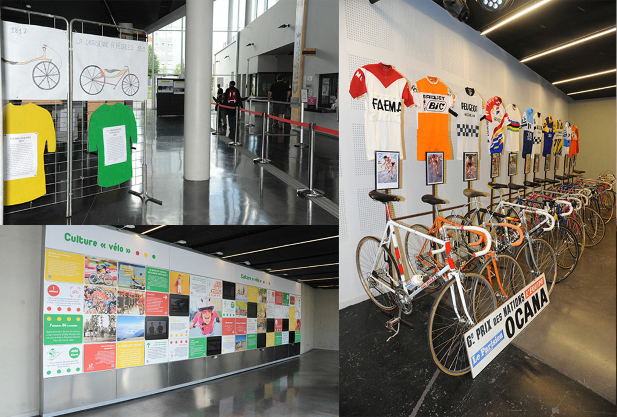 Exposition d'articles de presse, photos, maillots et vélos professionnels de grands coureurs du Tour de France comme Luis Ocaña, Bernard Hinault ou encore Eddy Merckx. Proposée par Monsieur Compañy, ancien coureur.