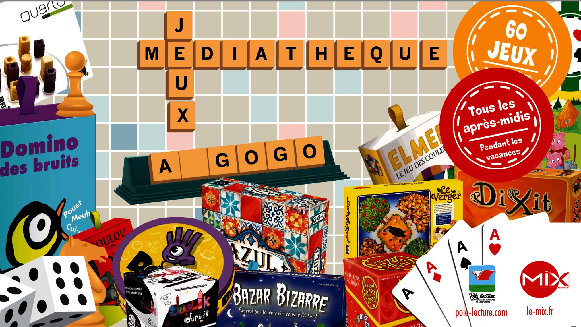 Plus de 60 jeux de société en accès libre à la médiathèque du MI[X]. Venez jouer en famille, entre amis ou avec de nouveaux joueurs.