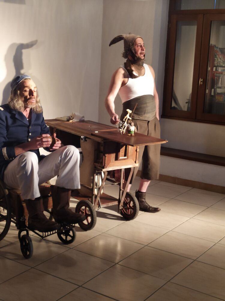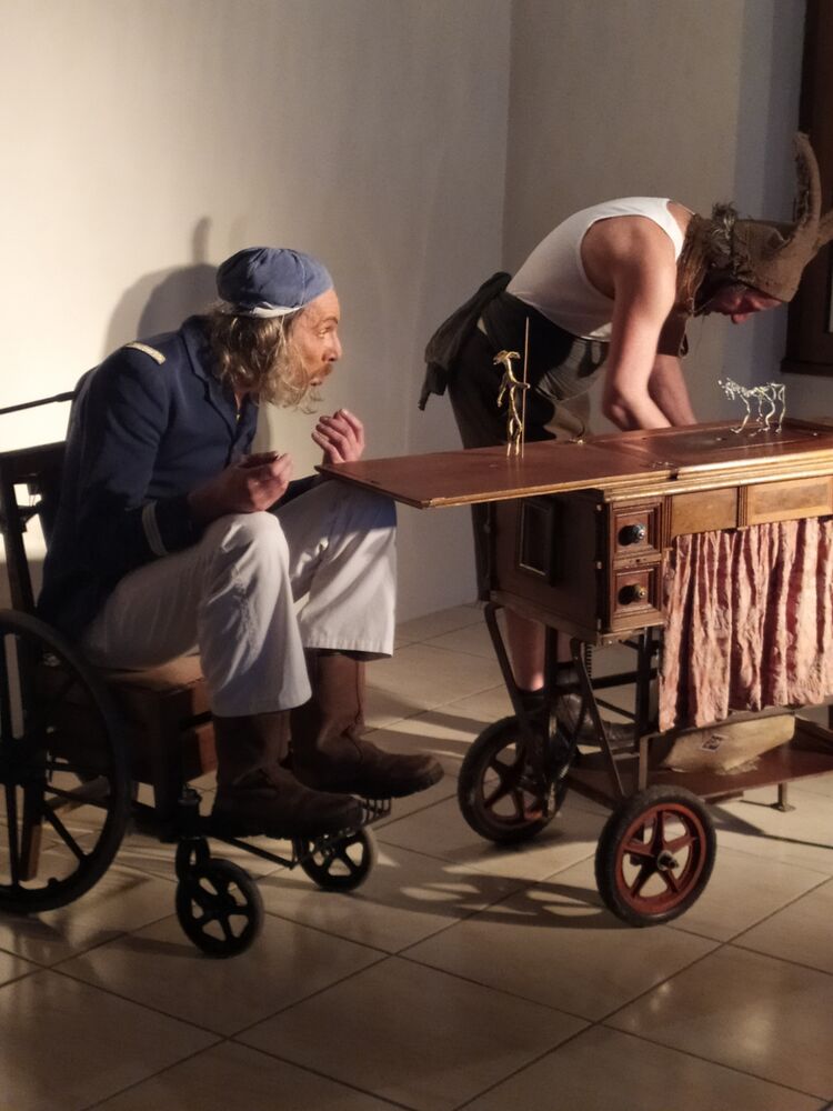 Sortis tout droit du bâillement des livres, le célèbre Don Quichotte et son fidèle Sancho Panza prennent corps de chair et d’objets pour vous jouer leurs aventures avec une table a roulette, une chaise et une bonne dose d’ingéniosité.
