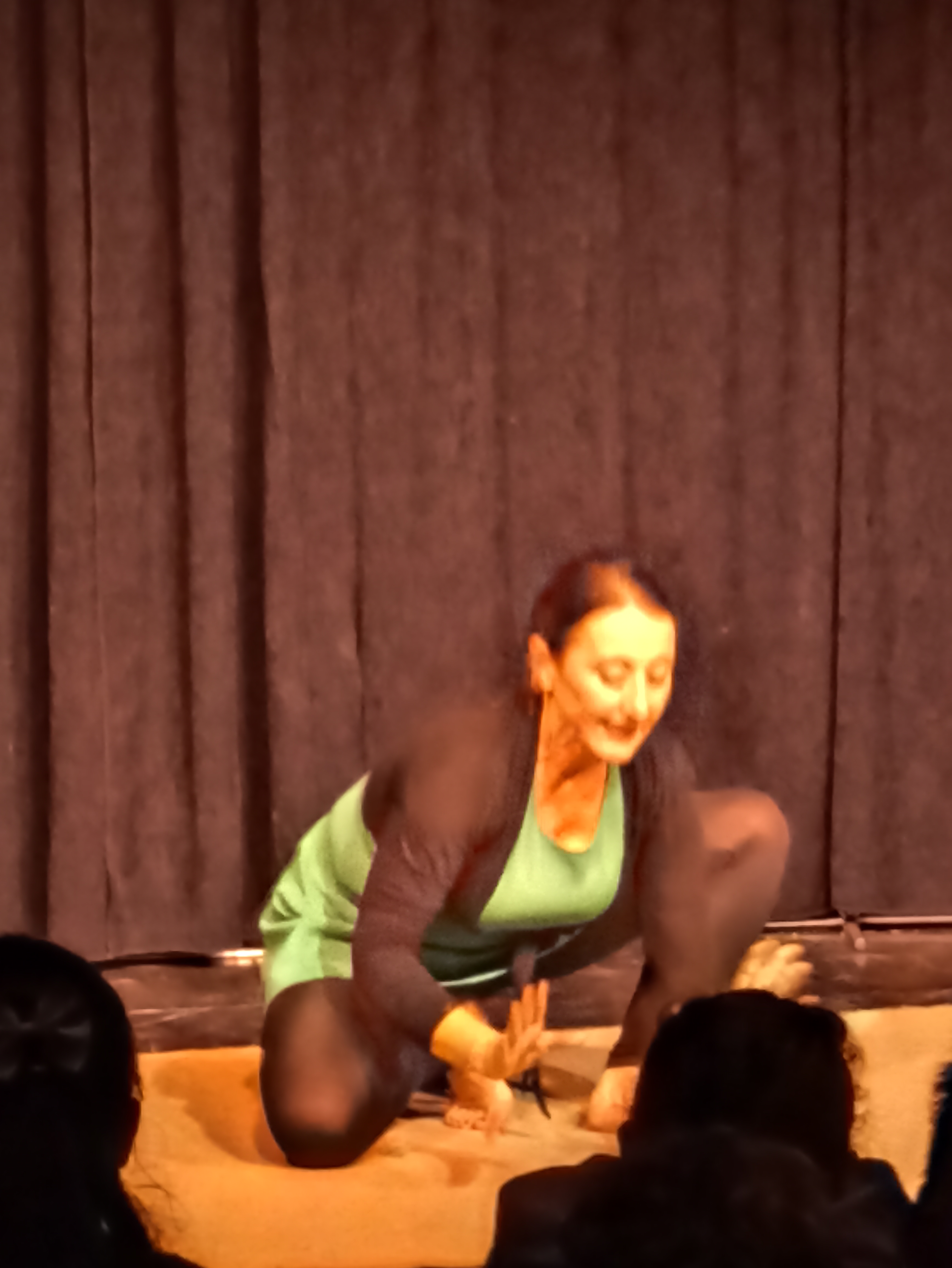 Faites danser vos mains comme les oreilles de papa éléphant. Faites vibrer les sourcils comme les ailes de l’abeille enivrée de pollen. Faites rouler vos yeux comme ce beignet bien rond et croustillant… Voici un petit cocktail dansé sauce Kathakali de contes animaliers et de petites fables qui titillent le bout des doigts et chatouillent la plante des pieds…